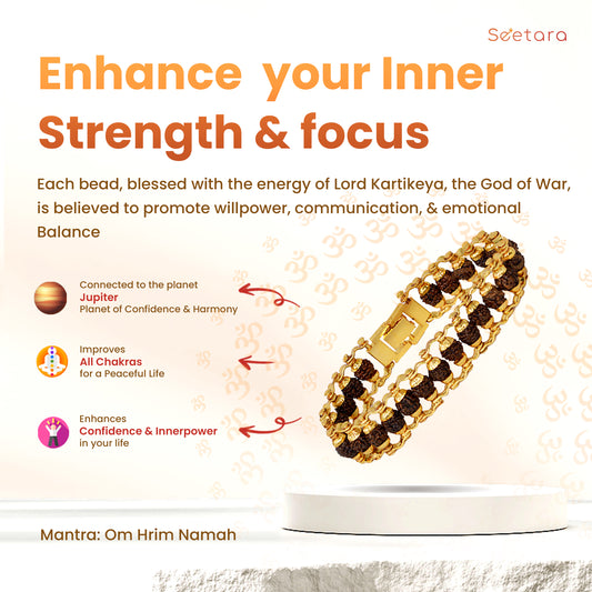 Premium Gold Plated 5 Mukhi Rudraksha Bracelet (Indonesian)
