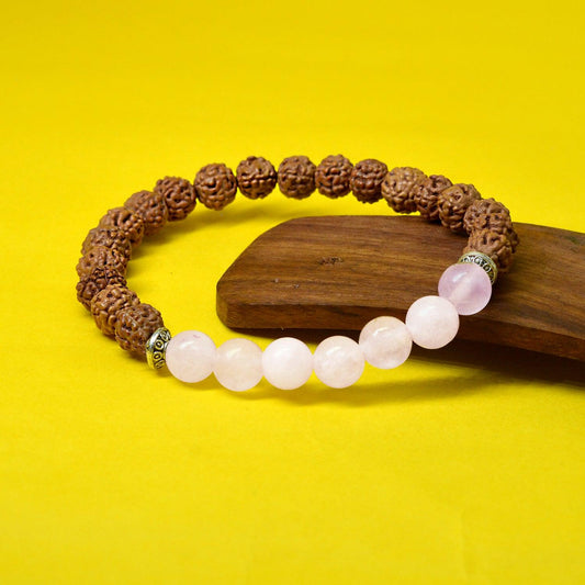 5 Mukhi Rudraksha & Rose Quartz Bracelet (Indonesian)