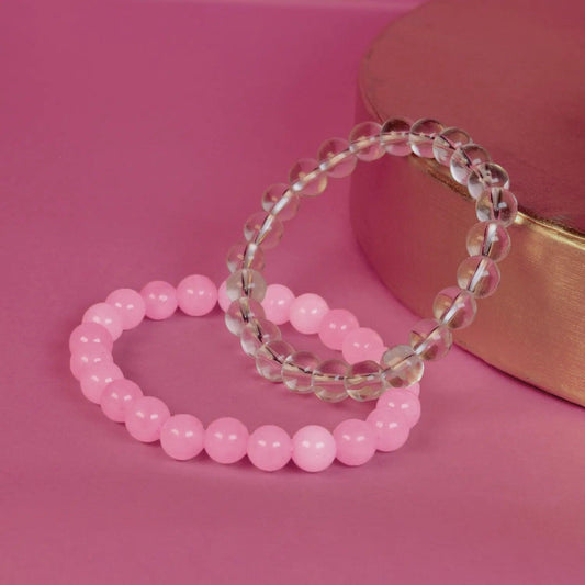 Love In The Stars Combo: Rose Quartz & Clear Quartz Couple’s Bracelet