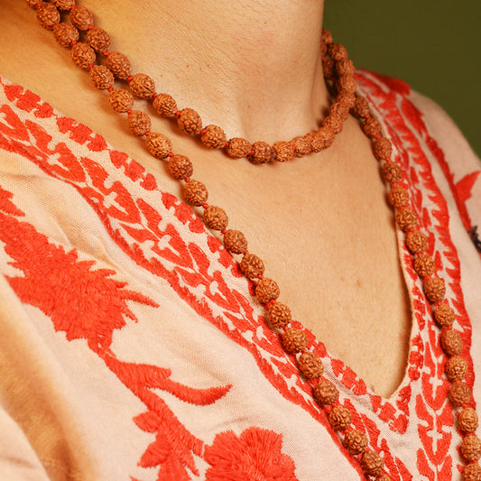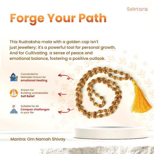 Rudraksha Mala with Gold Capping (Original Colour) (Indonesian)