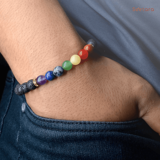 7 Chakra & Lava Stone Healing Bracelet with Hamsa Evil Eye | For Balancing & Protection