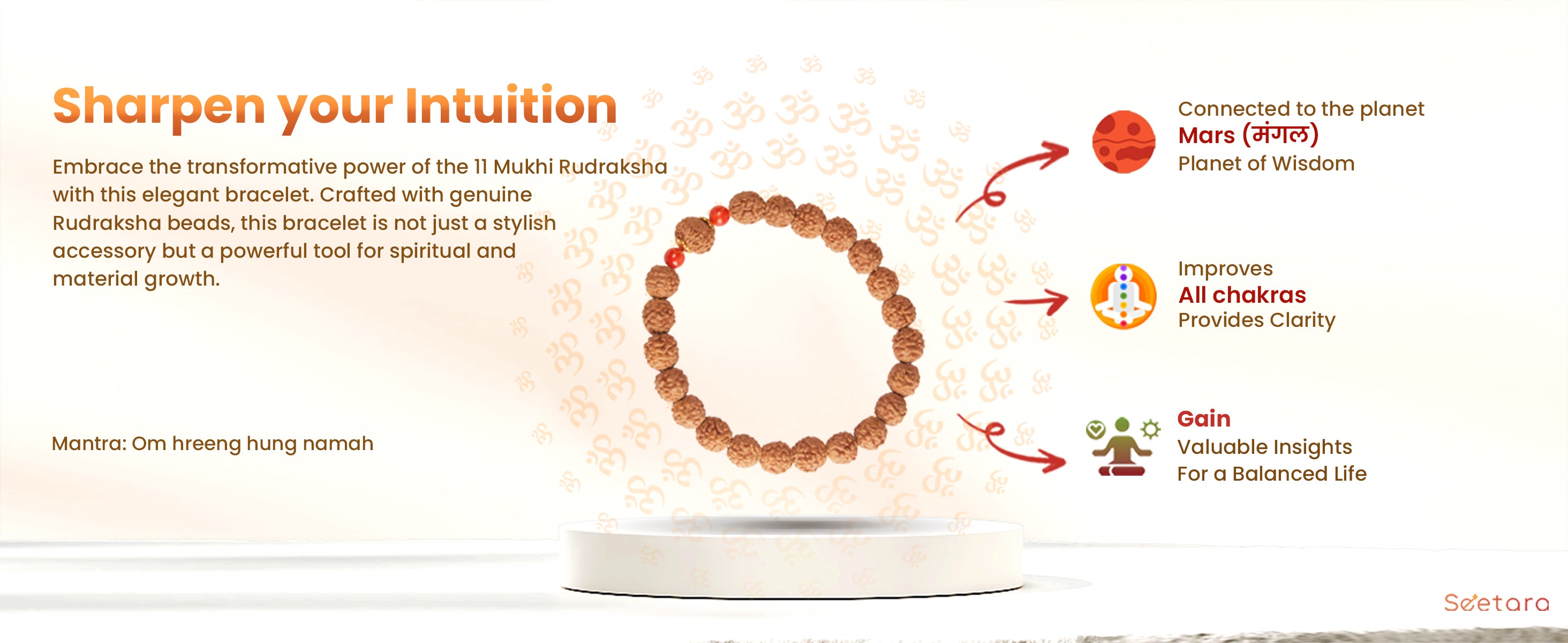 - Enhance both physical and mental fitness with the Eleven-Faced (11 mukhi) Rudraksha, ideal for individuals seeking improvement and maintenance.