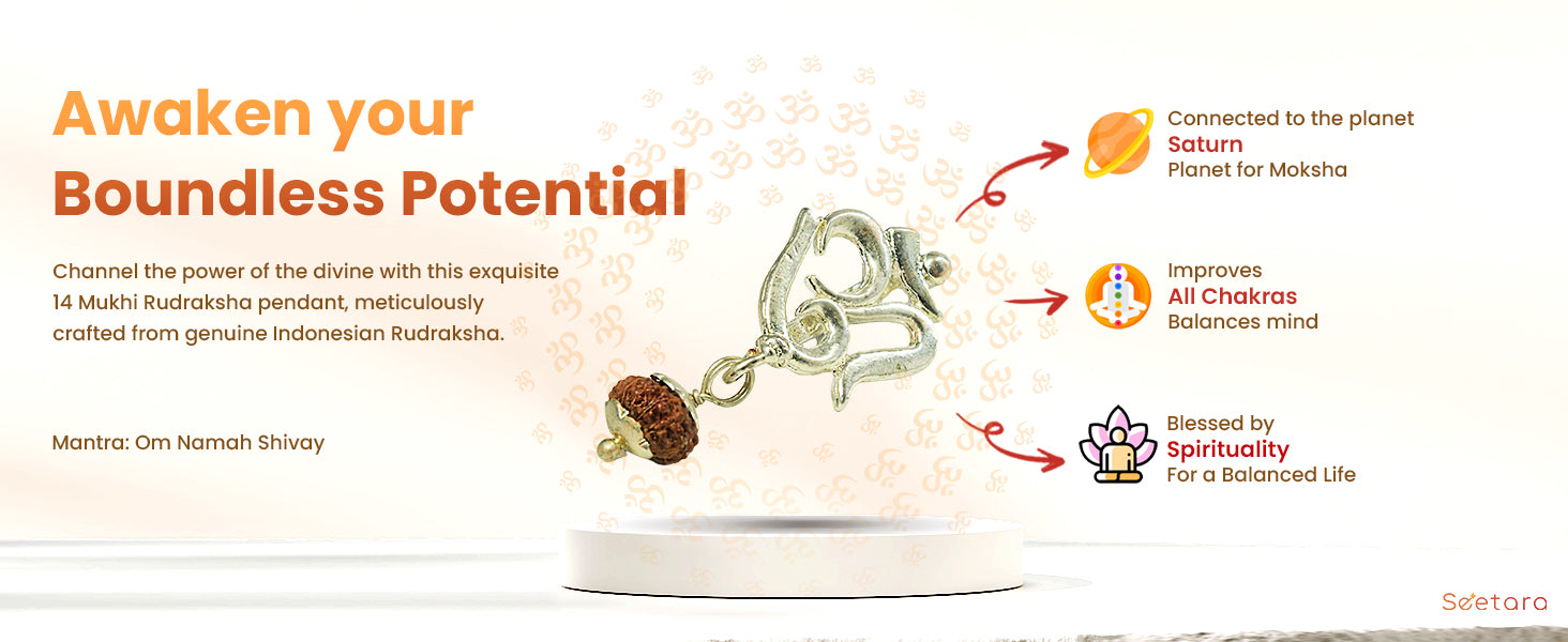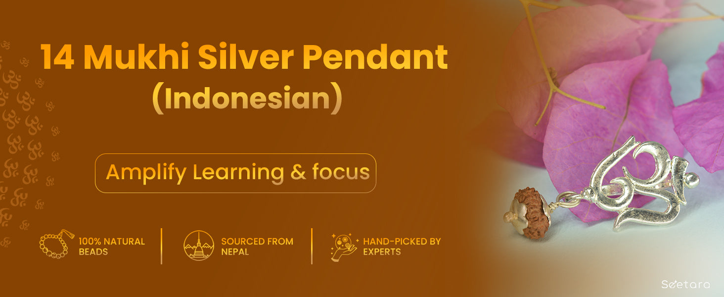 Embrace the profound spiritual essence of the Fourteen-Faced (14 Mukhi) Rudraksha, a highly revered and powerful sacred bead symbolizing Lord Hanuman and the mighty Planet Saturn. This original 14 Mukhi Rudraksha pendant is not only a divine symbol but also a conduit for channeling the formidable qualities of courage, fearlessness, and spiritual wisdom.