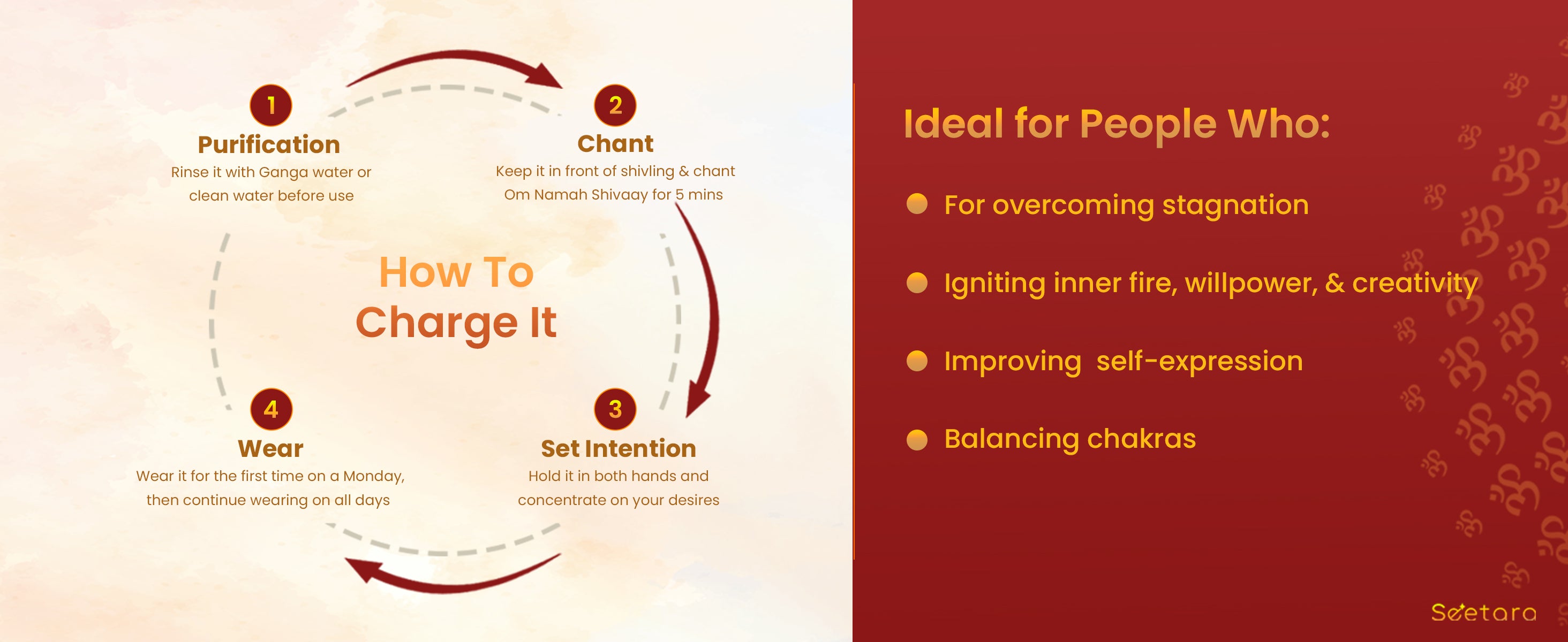 - Also advised for individuals facing challenges associated with a weak or negative Mars astrologically. It can be beneficial in mitigating the adverse effects of "Mangal Dosh (mangliks)" or "kuja dosh" when worn in combination with an 8 Mukhi Rudraksha.