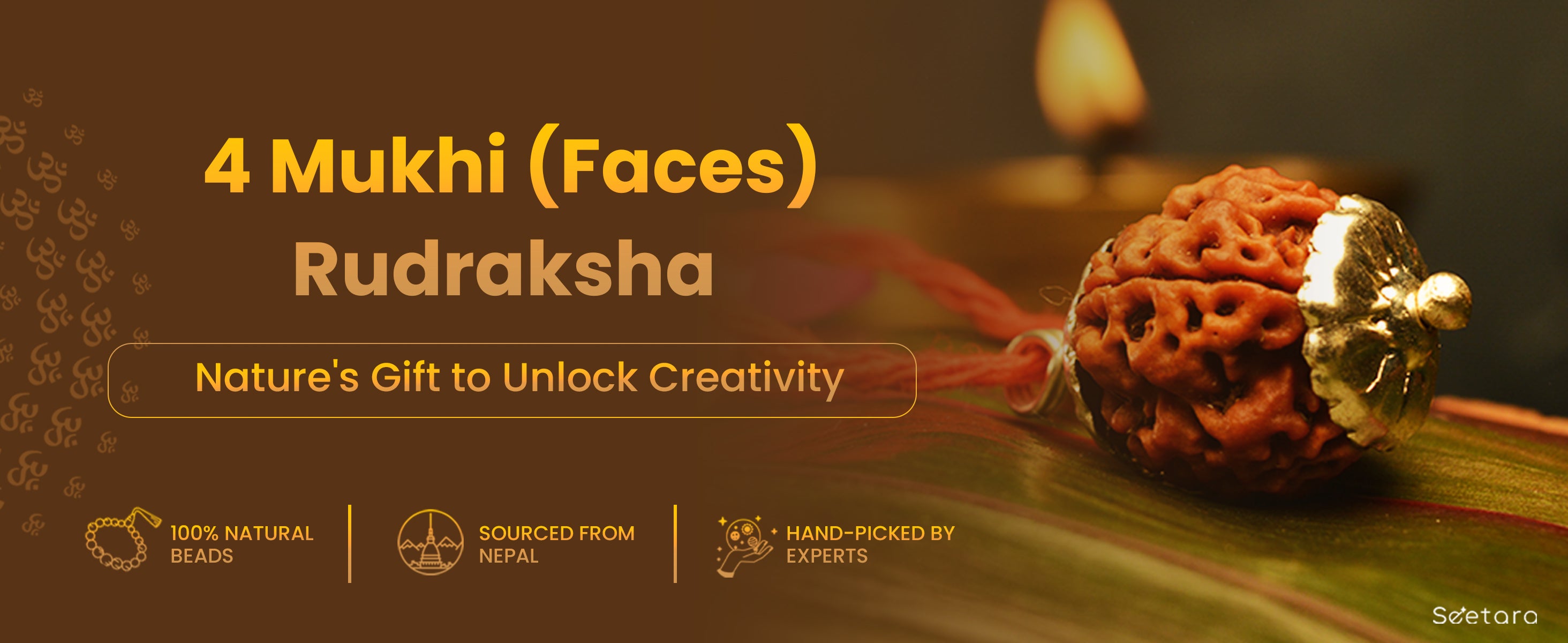 Step into a realm of creativity and enlightenment with Seetara's 4 Mukhi Rudraksha, blessed by Lord Brahma, the Creator. This sacred bead holds the power to awaken your creative potential and nurture harmony and connection in your life.