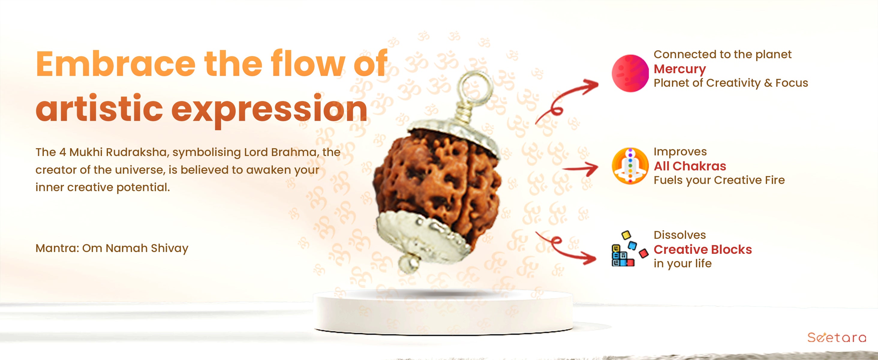 Unleash your artistic expression and embrace the divine flow of creativity with Seetara's authentic 4 Mukhi Rudraksha.