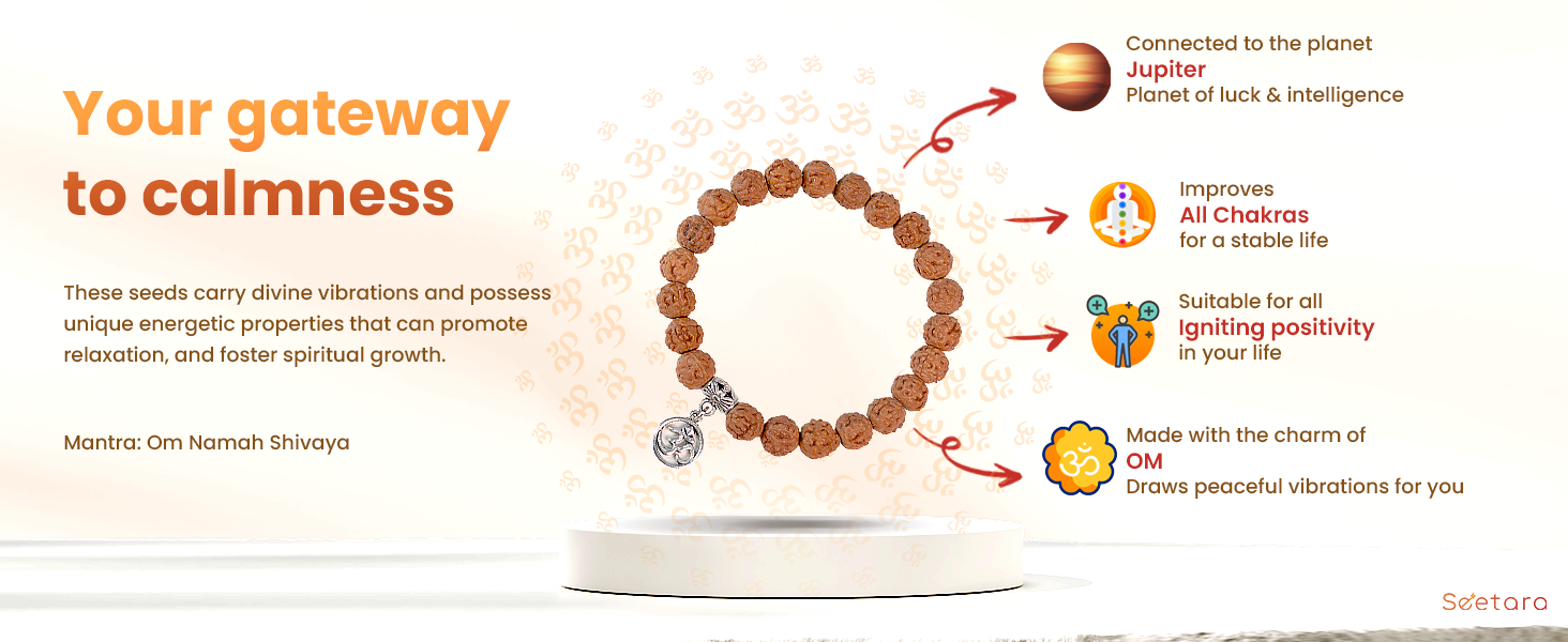 - Energy Balance: Align and balance your energy centers with the combined power of 5 Mukhi Rudraksha beads and the OM symbol.