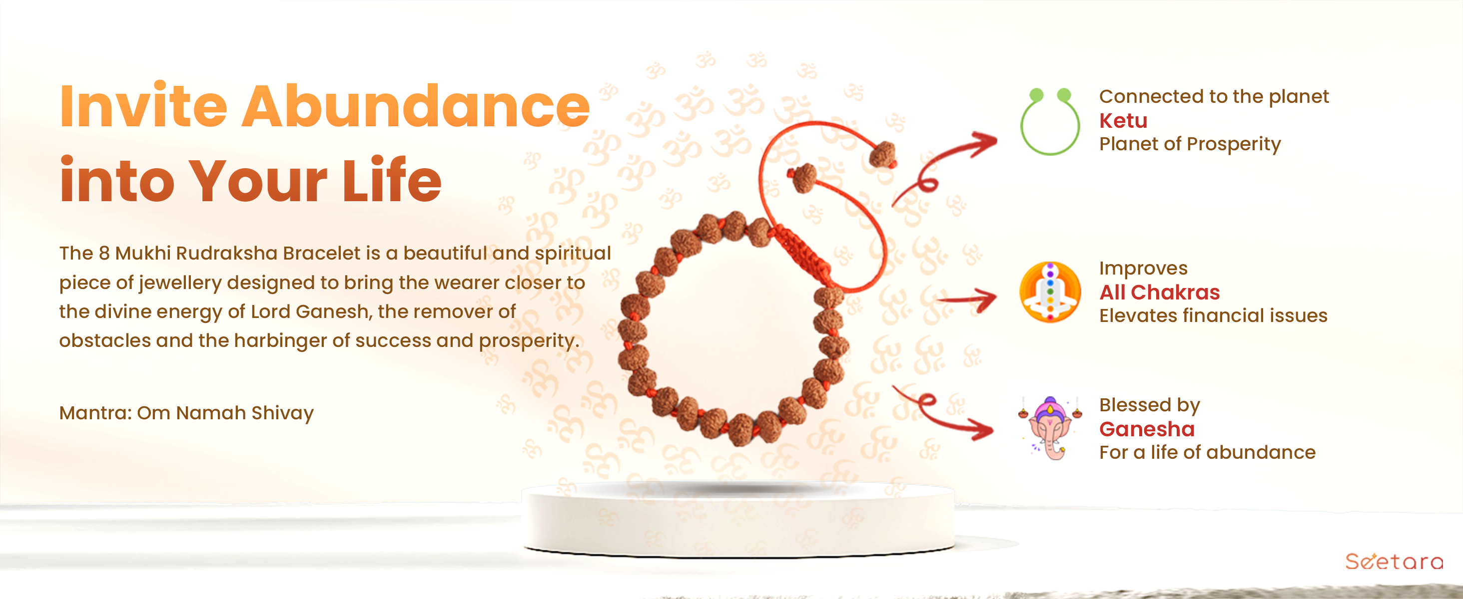 Embrace the transformative power of the original 8 Mukhi Rudraksha, revered as a symbol of Lord Ganesha's wisdom and blessings. This auspicious bead is renowned for its ability to bestow immense mental strength, remove obstacles, and bring fortune into one's life. Ruled by the shadow planet Ketu, it helps suppress malefic effects and attracts wisdom and prosperity.