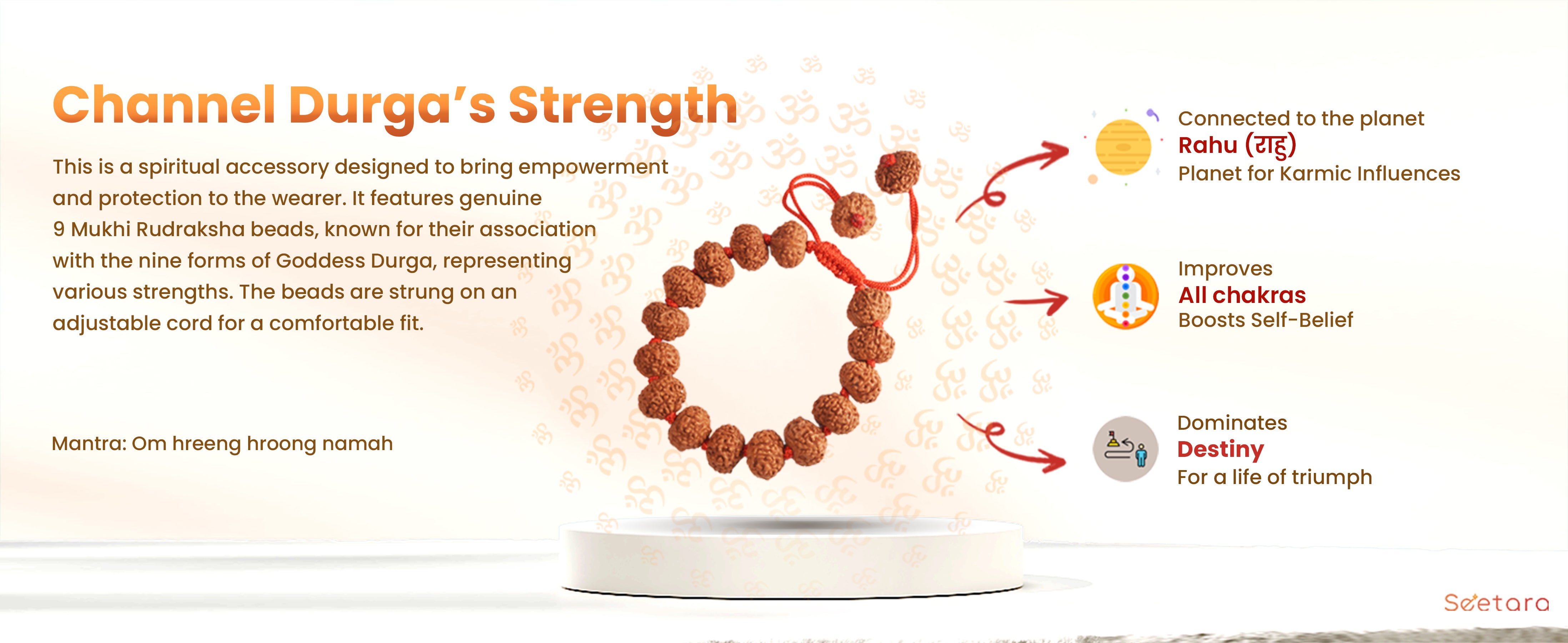 - Benefit from the combined virtues of the Seven-Faced (7 mukhi) Rudraksha, associated with Goddess Mahalaxmi, aiding in overcoming financial obstacles.