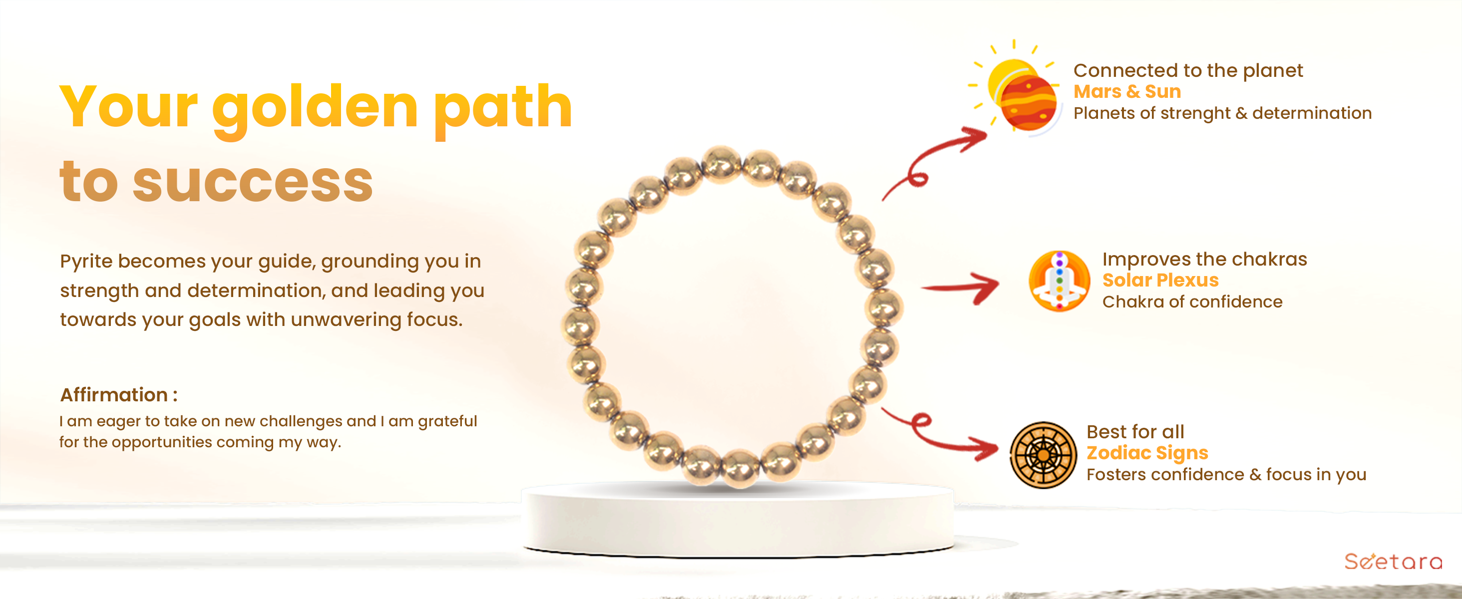 Golden Pyrite Healing Crystal Bracelet | For Abundance & Strength