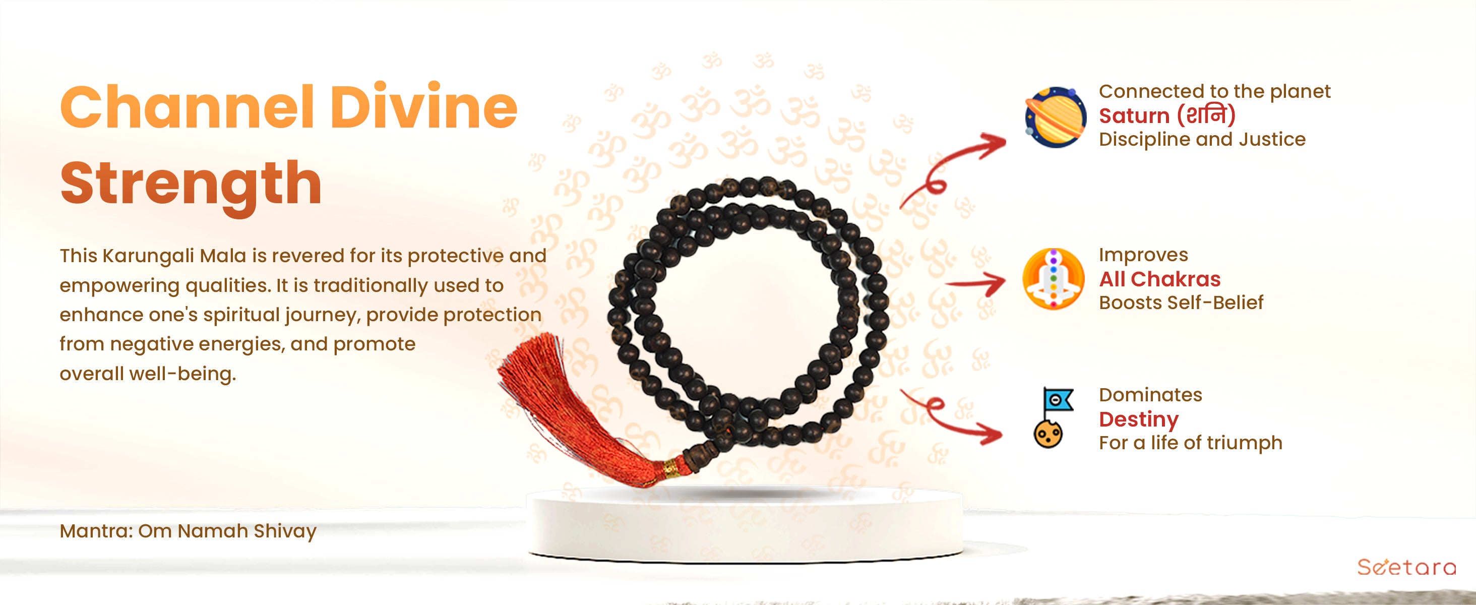 - Boosts Confidence: By instilling a sense of courage and self-assurance, the Karungali Mala empowers you to face life's challenges with renewed vigor and confidence.