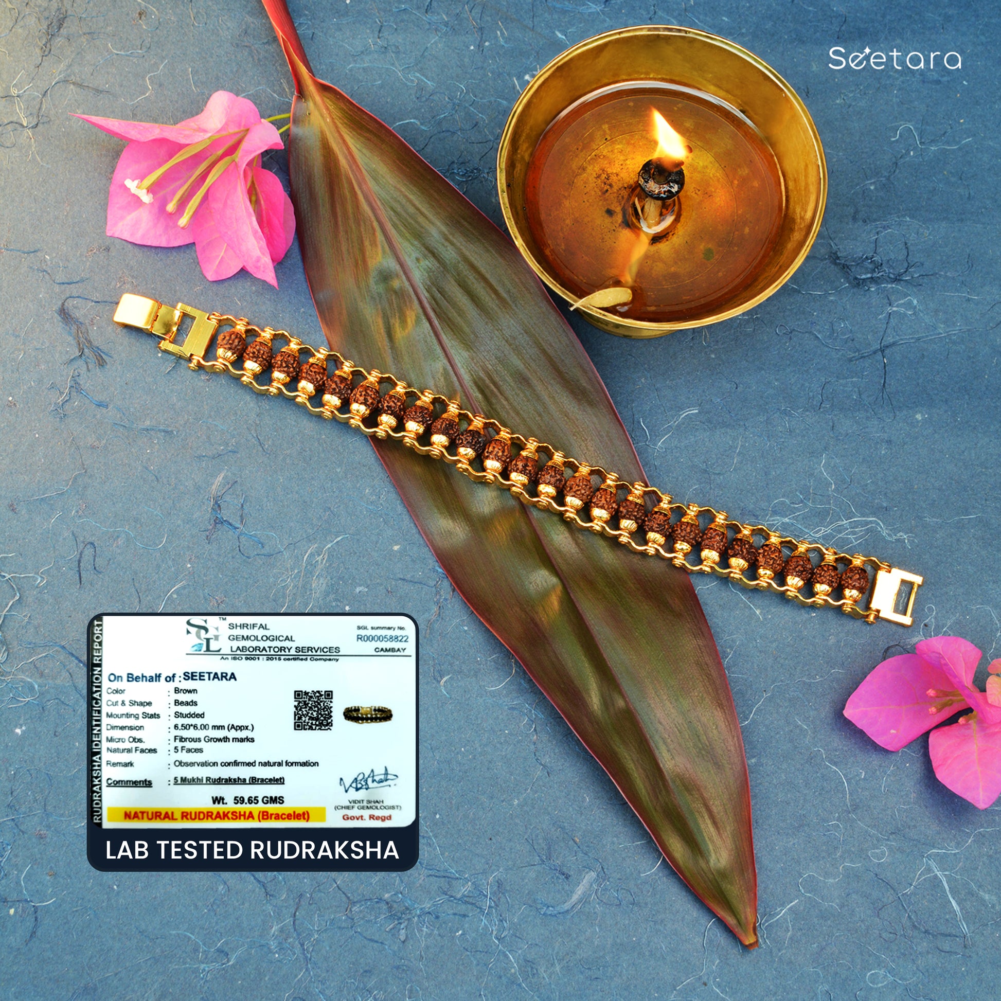 - Package Includes: 1 Rudraksha Gold-Plated Bracelet and Lab Certification
