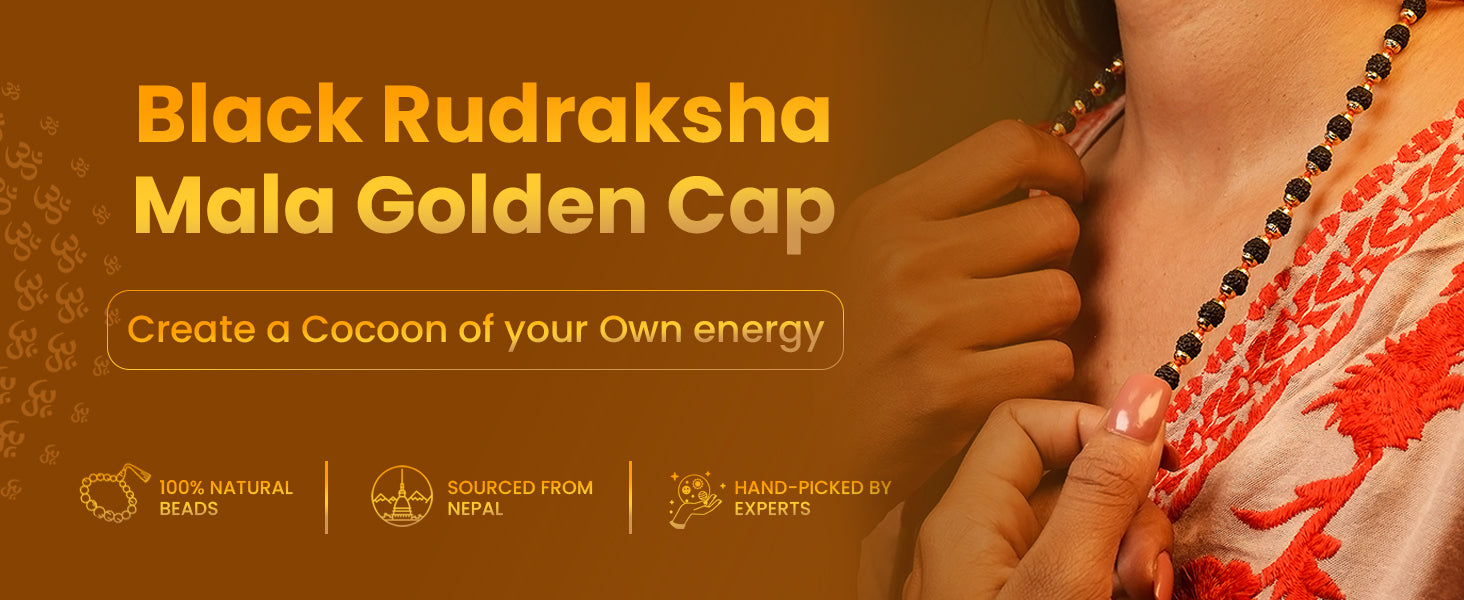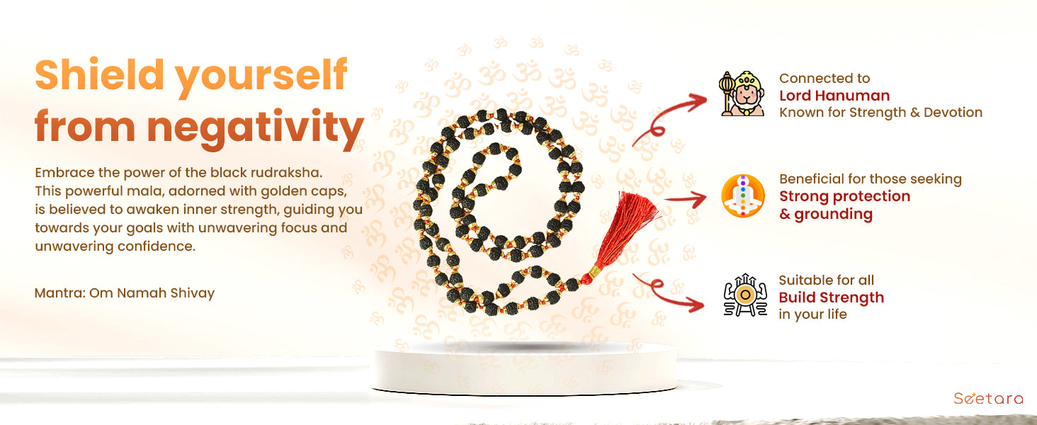 Discover the profound significance of the Seetara Rudraksha Mala with Gold Capping (Black Colour), a sacred and resilient Mala revered for its spiritual and healing properties.