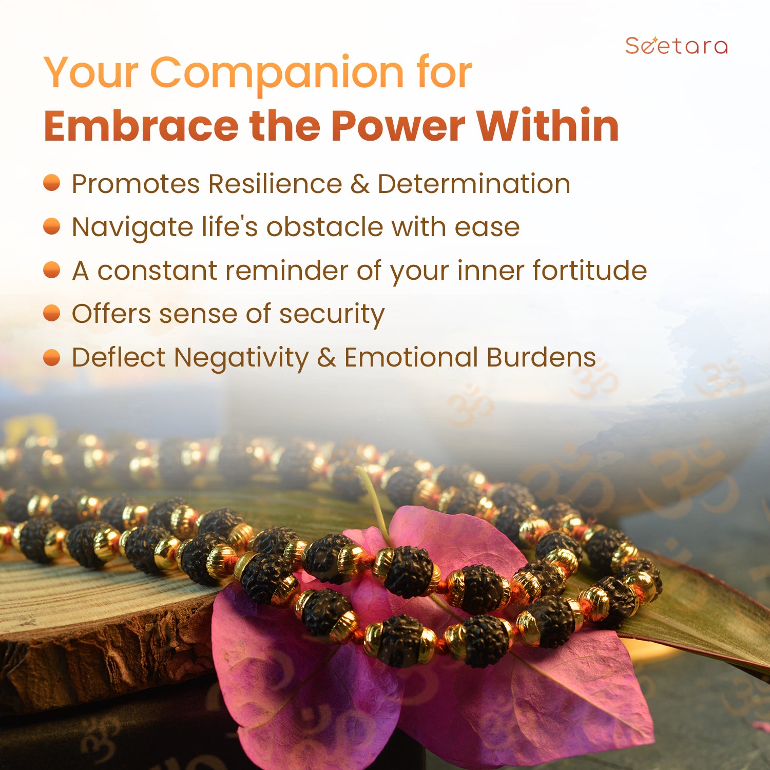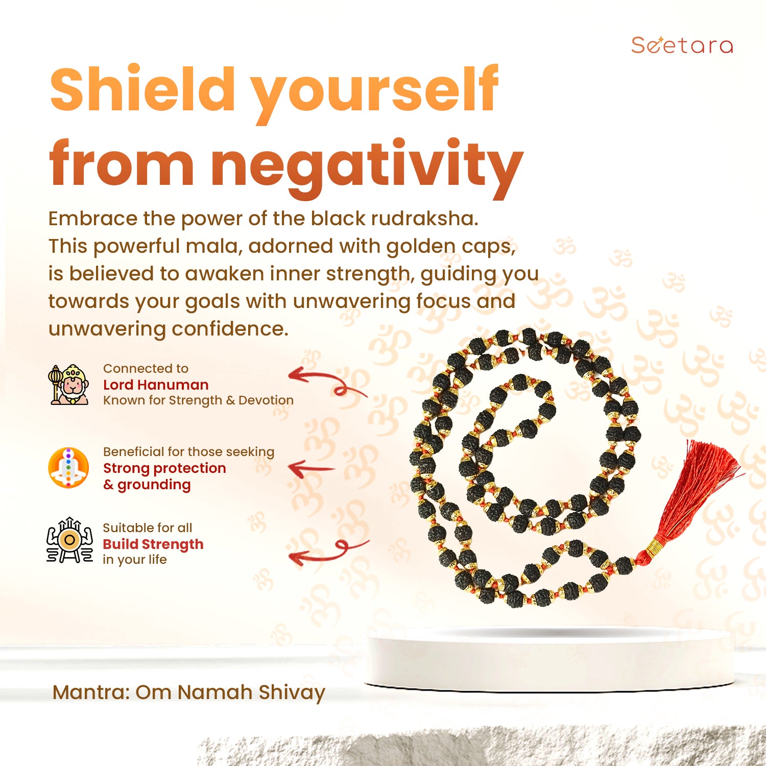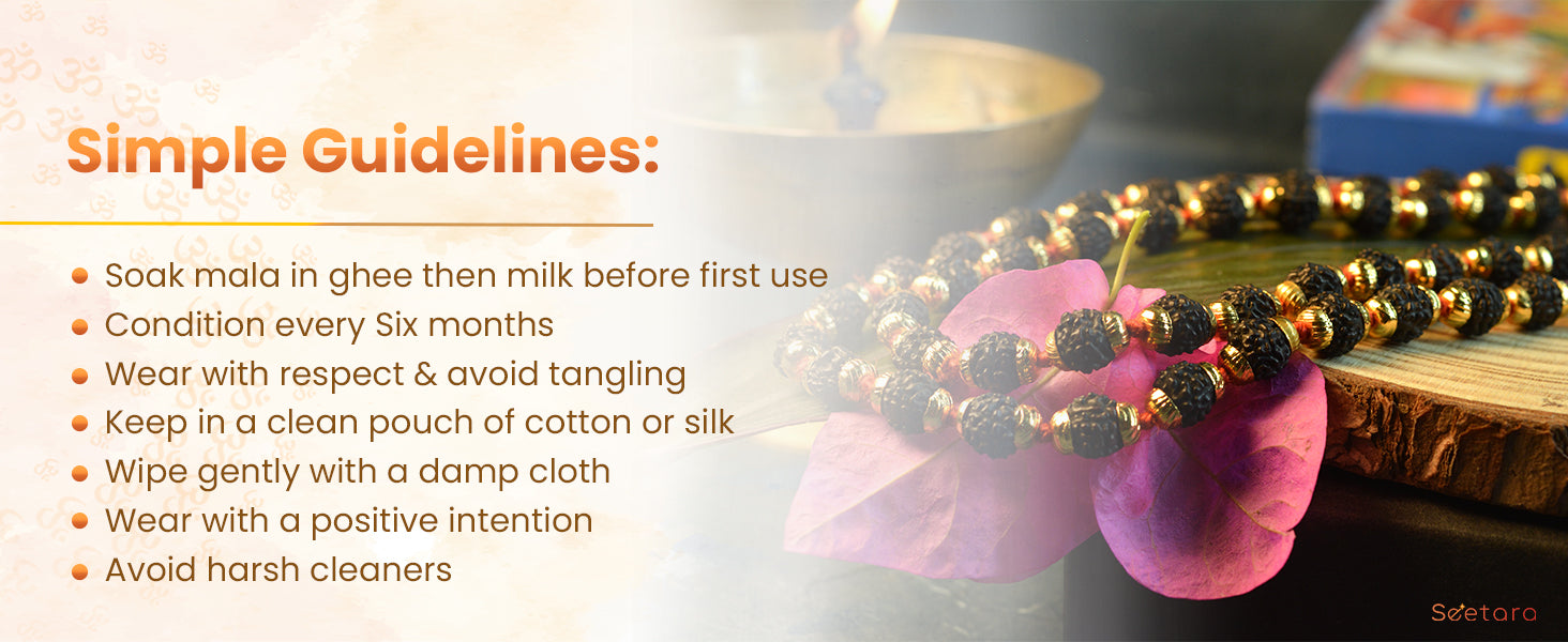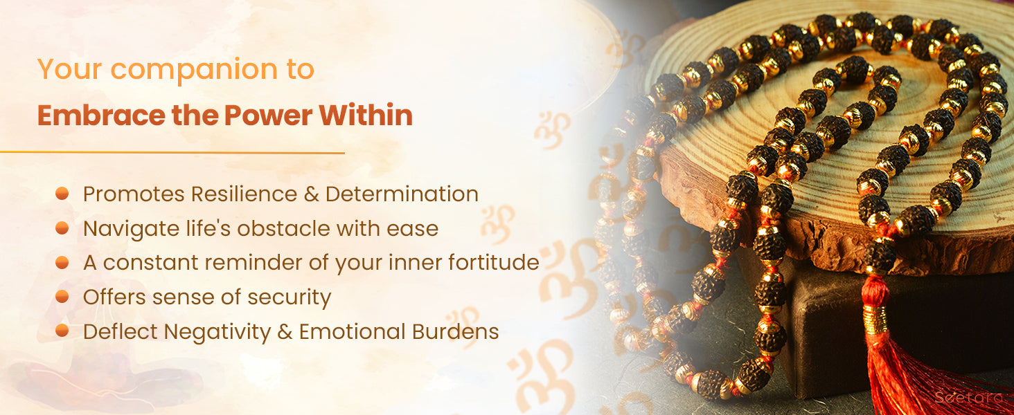 Embrace the original Seetara Rudraksha Mala with Gold Capping to harness the potent attributes of spirituality, well-being, and positive energy. This exquisite Mala represents a powerful tool for meditation, healing, and spiritual growth, making it an essential addition to your spiritual journey.