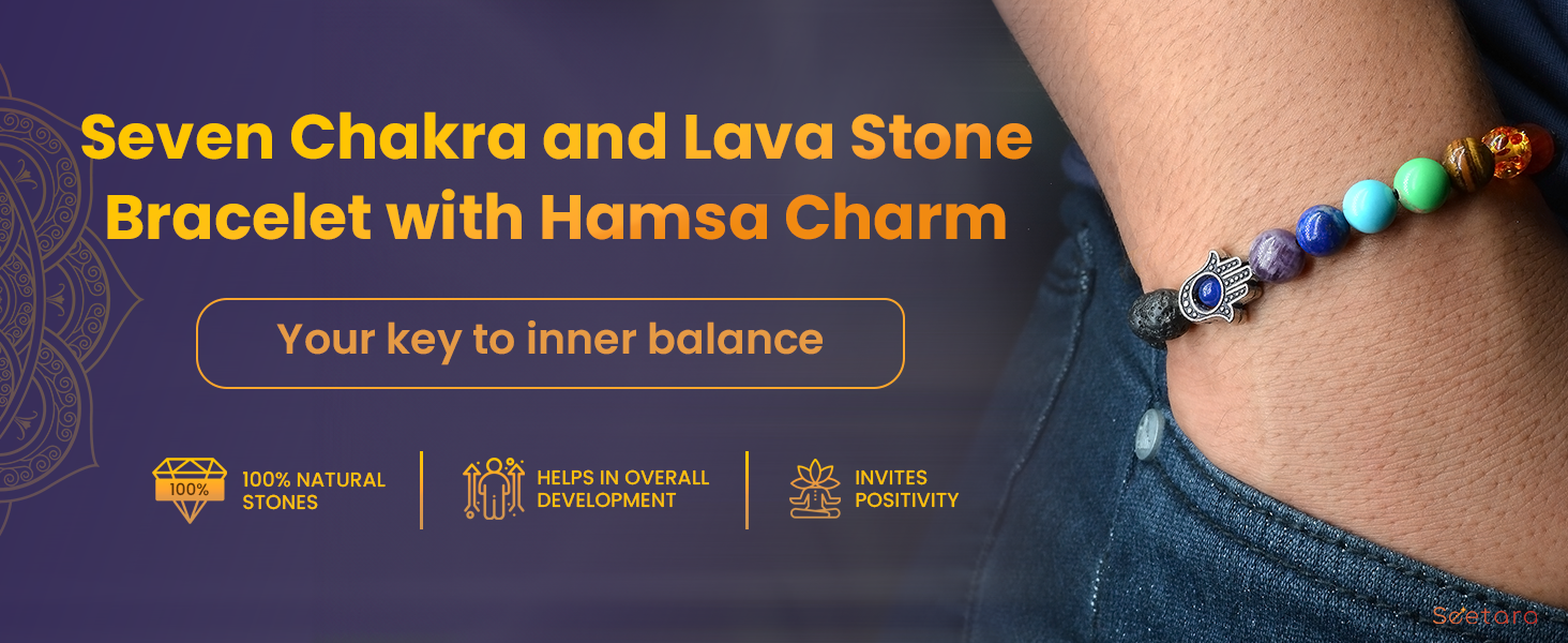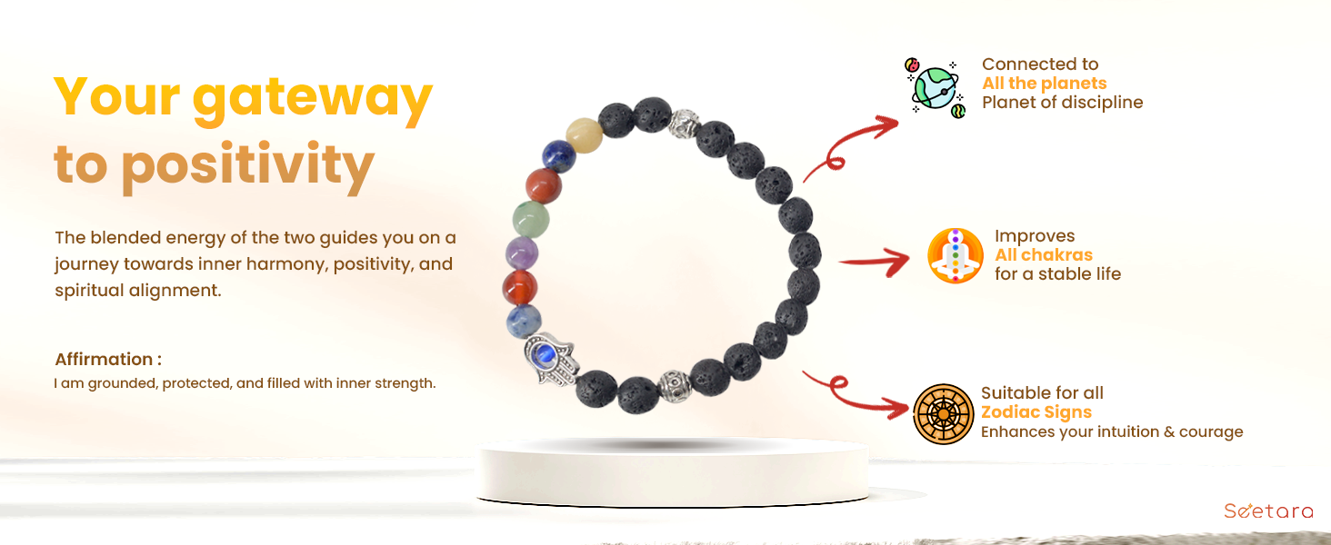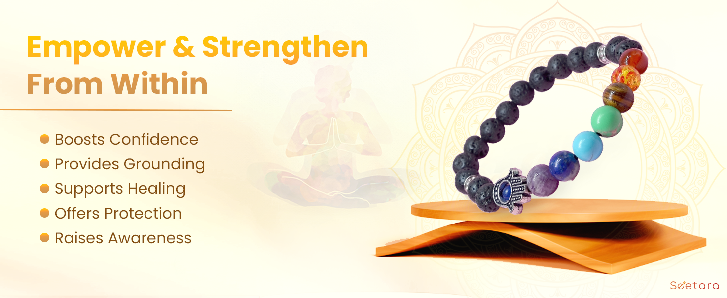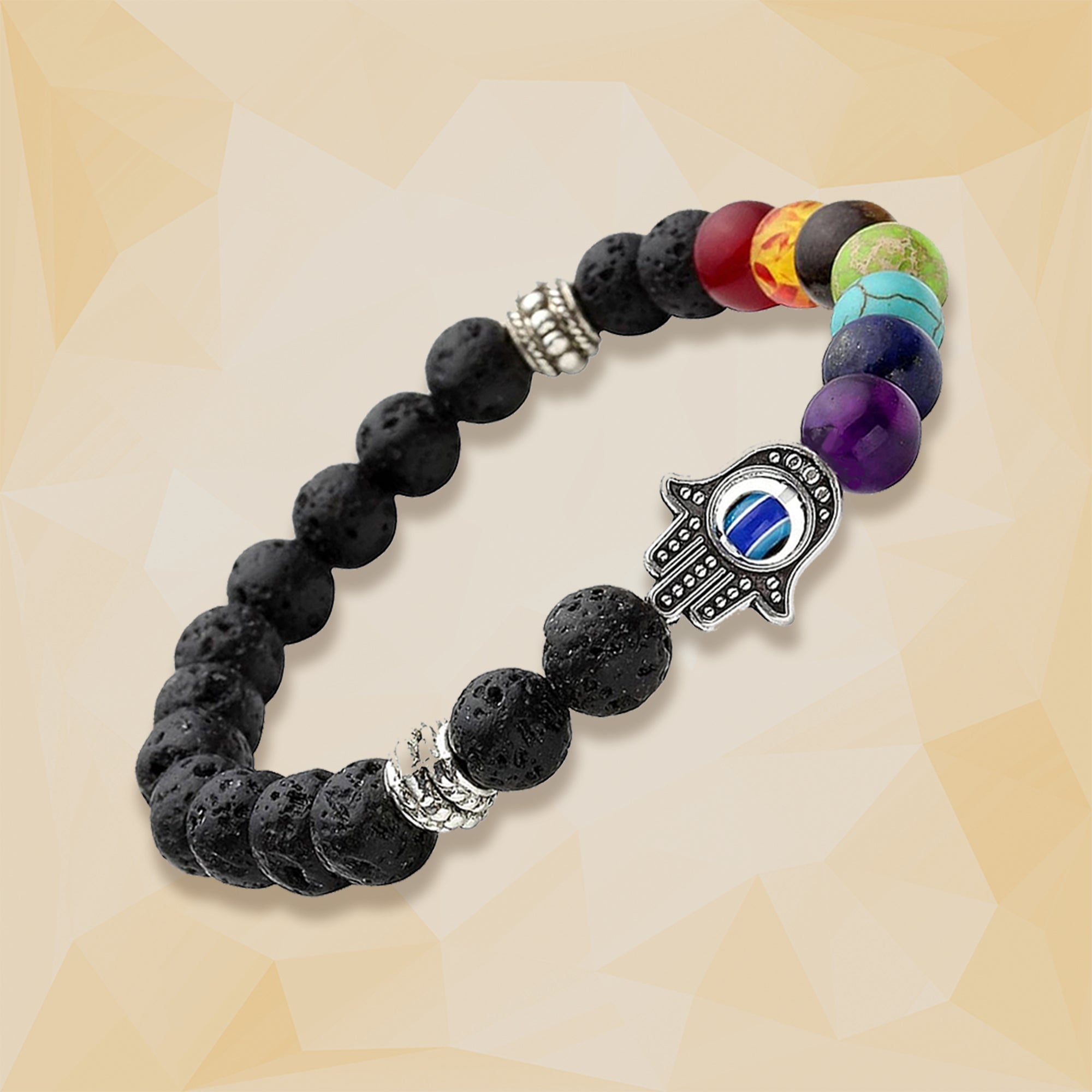 7 Chakra & Lava Stone Healing Bracelet with Hamsa Evil Eye | For Balancing & Protection