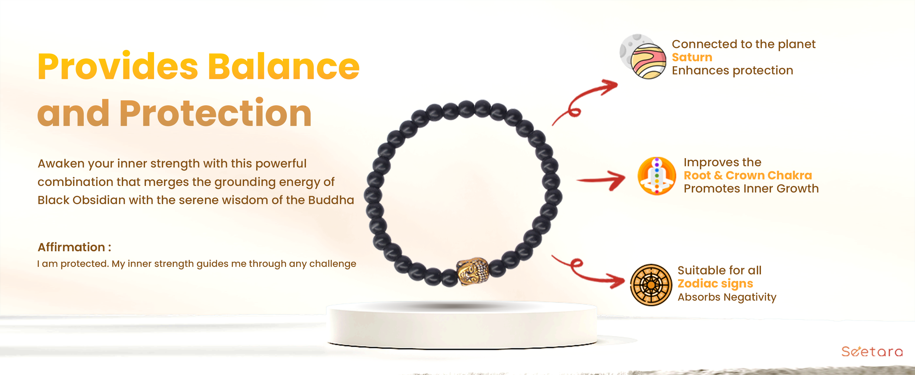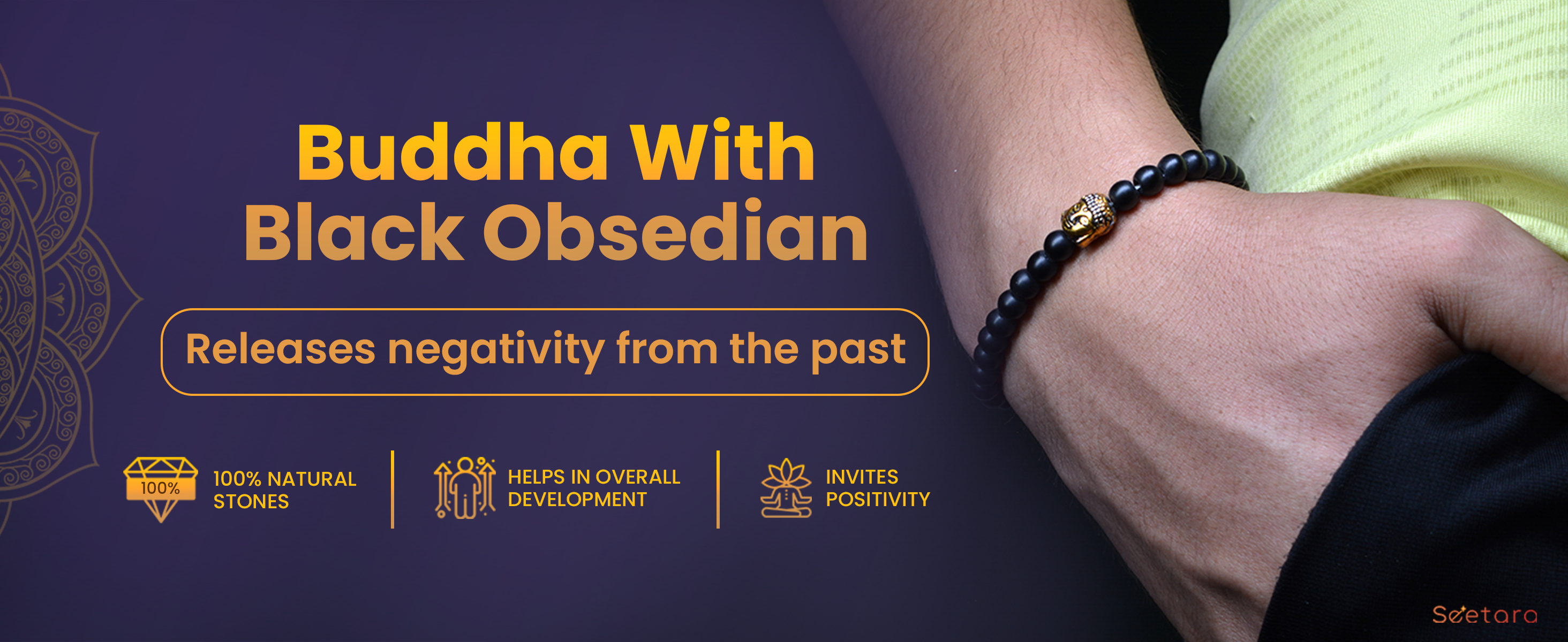 Black Obsidian Healing Bracelet with Buddha Charm | For Purifying & Protection