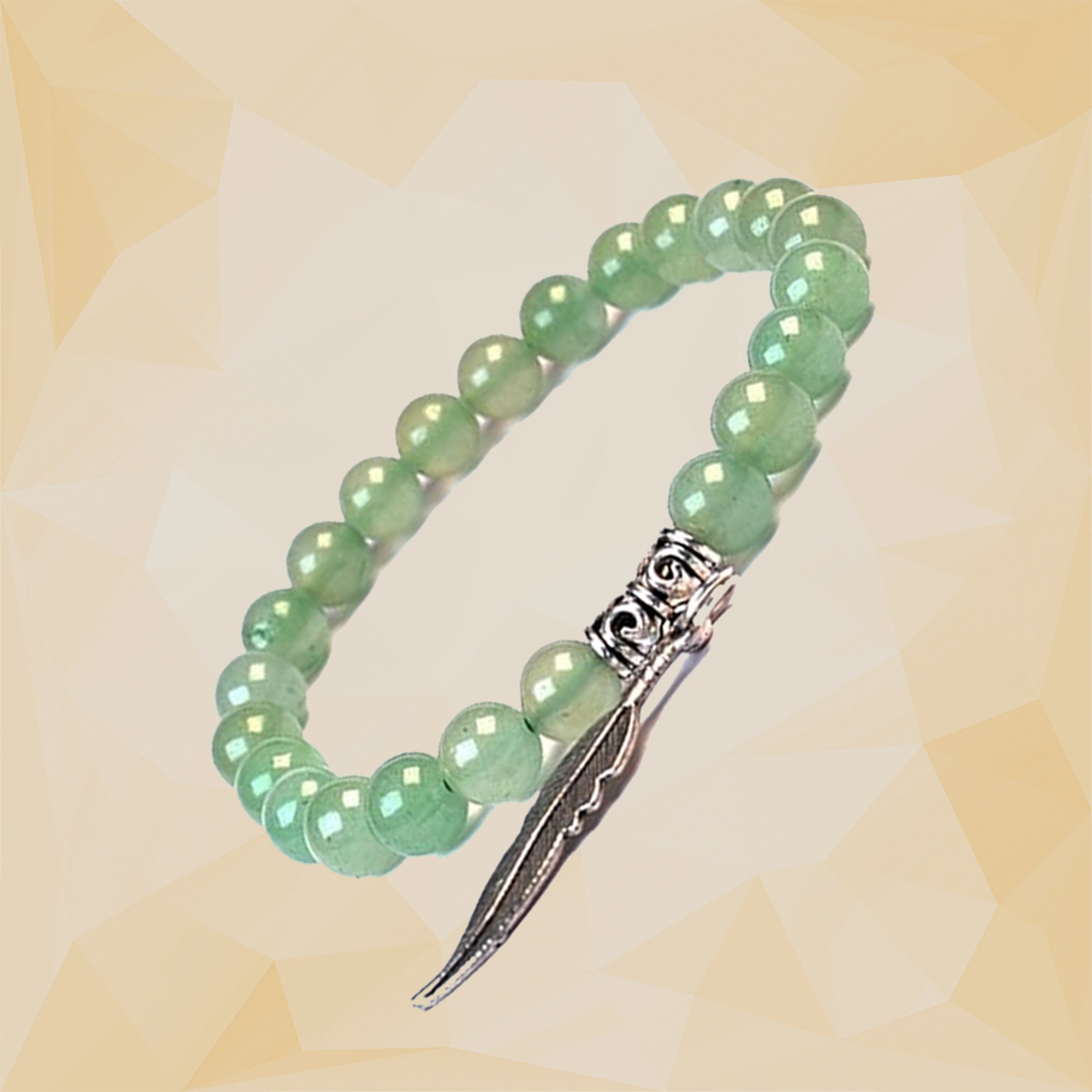 Green Aventurine Healing Crystal Bracelet with Feather Charm | For Abundance, Prosperity, and Happiness